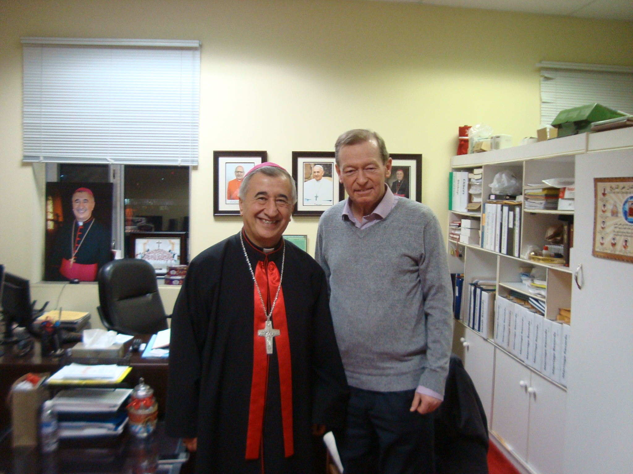 His Holiness Pope Francis has appointed Most Rev. Emanuel Shaleta as Eparchial Bishop of the Chaldean Catholic Eparchy of Mar Addai of Toronto in January 2015. The Catholic Refugee Sponsors’ Council (CRSC) representatives Brian Dwyer and Rabea Allos met with his Excellency Bishop Shaleta. He was installed as Eparchial Bishop in March 2015. The Eparchy of Mar Addai of Toronto of the Chaldeans was established in June, 2011. The Eparchy is the only Chaldean diocese in Canada and includes all the country’s Chaldean Catholics. In Toronto the parish church is Good Shepherd Chaldean Cathedral.